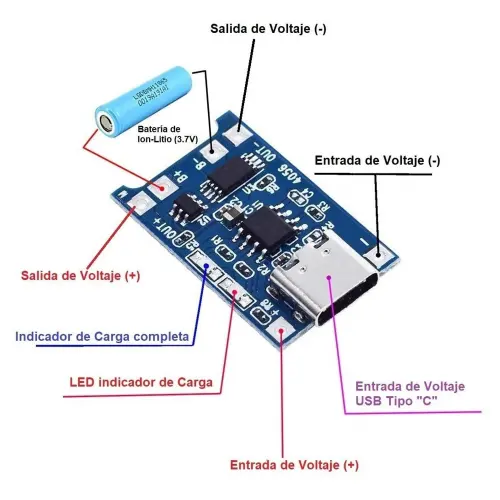 Módulo TP4056 para batería de litio 18650